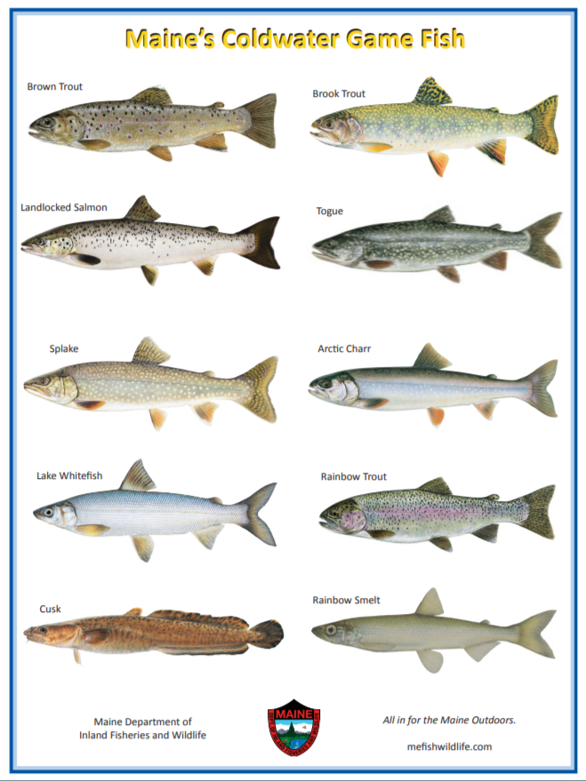 A list of Maine’s inland fresh water species can be found at the MDIFW website. B.O.O. guide services will typically target Maine’s warm water species.