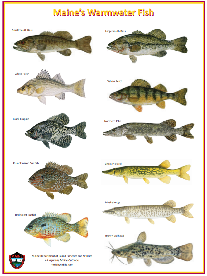 Many of Maine’s warm water species have little to no restrictons. There may be special regulations for specific bodies of water. You can find details on catch and length limits for each game fish species at the MDIFW website.